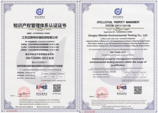 2020年10月, 江苏迈斯特顺利通过华亿认证中心有限公司的知识产权管理体系审核,获得了《企业知识产权管理规范》 ( GB/T29490-2013 )体系认证证书。